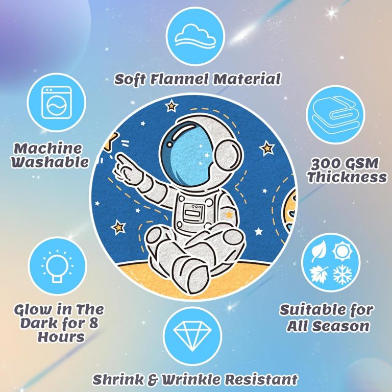 This super soft glow in the dark blanket is made of flannel material, The pink unicorn blanket is made of high quality 100% plush polyester. which provides warmth while maintaining a soft touch is good to wrap you in warmth and comfort on cold nights, also skin friendly.